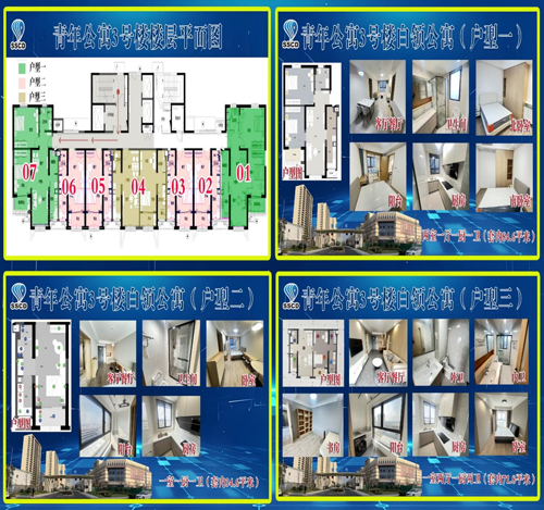 青年公寓于2021年12月開工建設(shè),共建設(shè)保障性租賃住房1450套,其中成套租賃住房(白領(lǐng)公寓)154套,精裝修交付;非成套租賃住房(藍領(lǐng)公寓)1296間,毛坯交付:可容納約7900人入住,同時配建一棟四層約1.8萬平方米的商業(yè)樓和2.6萬平方米地下車庫,共設(shè)置機動車位781個。3號樓(白領(lǐng)公寓)于2025年1月1日正式啟用,對外出租。