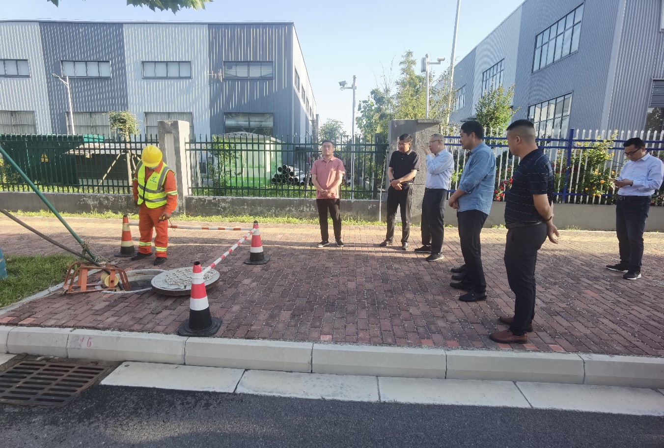 在鏡泊湖路疏通作業(yè)現(xiàn)場(chǎng),檢查組認(rèn)真聽取了園區(qū)汛前排水防澇工作進(jìn)展情況匯報(bào),并詳細(xì)詢問了園區(qū)汛前管道疏通、檢測(cè)及維修相關(guān)情況。