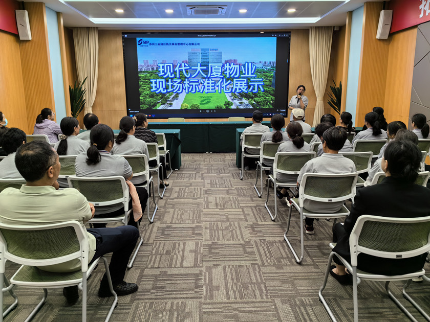 培訓分兩部分,一是認真觀看了蘇州工業(yè)園區(qū)機關事務管理中心物業(yè)服務的標準化視頻,學習借鑒了不同場所的清潔步驟、操作規(guī)程、細節(jié)處理、檢查標準等,強化認真履行“質量至上、安全第一”的工作態(tài)度和職責。二是結合項目實際情況,開展工作場景模擬,保潔人員互相分享心得,交流服務經驗,提升服務技能。