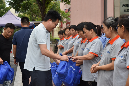 三伏天以來,宿遷地區(qū)氣溫節(jié)節(jié)攀高,連日高溫天氣給一線勞動(dòng)者帶來了嚴(yán)峻考驗(yàn)。為切實(shí)做好防暑降溫工作,保障一線勞動(dòng)者的身體健康安全, 8月14日,建發(fā)公司組織開展“一線送清涼”高溫慰問活動(dòng)。公司副總經(jīng)理倪松、相關(guān)部門負(fù)責(zé)人共同參加了慰問。