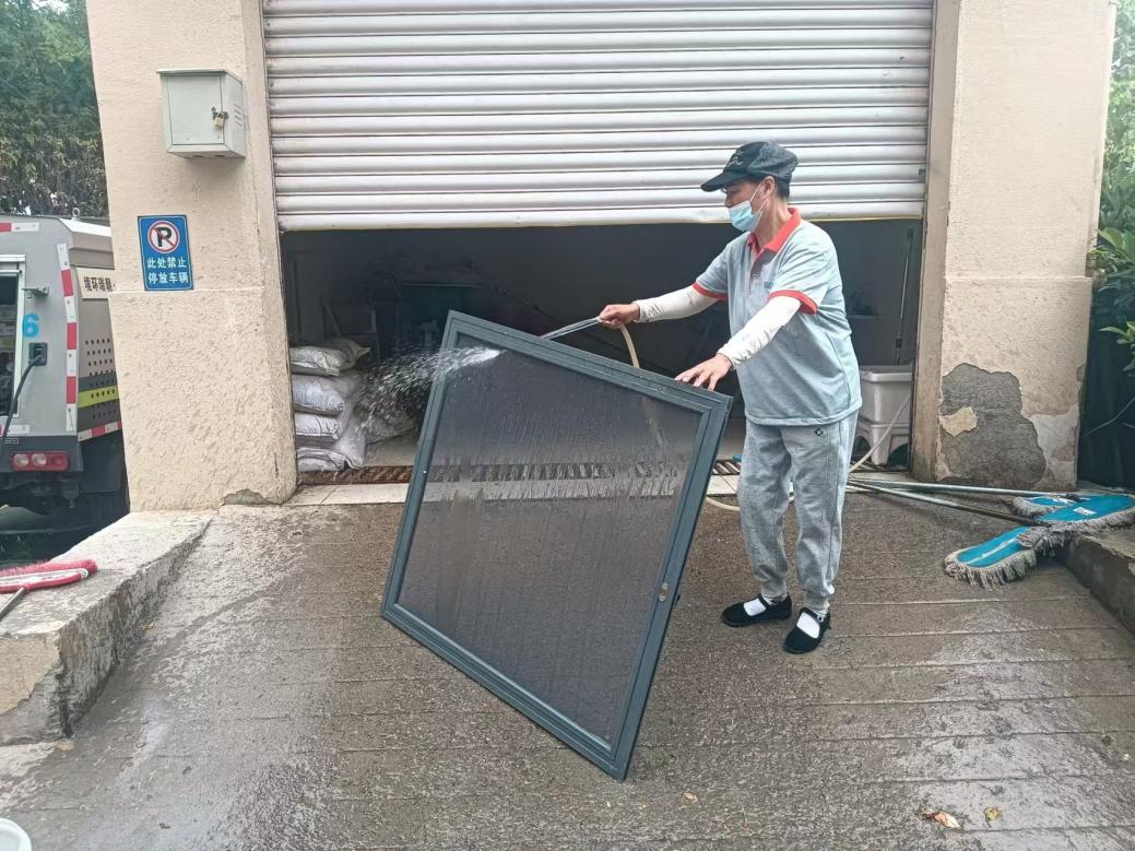 地墊、紗窗清洗區(qū)也備受居民歡迎,工作人員用高壓水槍、刷子等清洗工具,通過(guò)洗、刷、沖等環(huán)節(jié),灰撲撲的地墊、紗窗經(jīng)過(guò)“洗禮”后煥然一新。