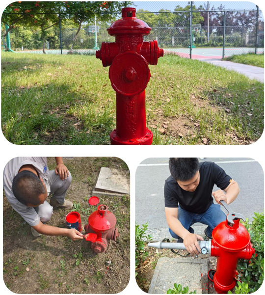 為及時高效完成消火栓翻新工作,工作人員迅速行動,選用材料,攜帶鐵刷、鋼絲球、扳手和油漆,小心拆開消防栓,細(xì)心清除銹跡,認(rèn)真打油上漆,給區(qū)域內(nèi)的消火栓進(jìn)行除銹打油穿“新衣”,確保消防設(shè)施正常有效使用。同時,針對消防栓啟閉閥是否靈活、悶蓋內(nèi)膠圈是否完整、消防栓零部件是否有損壞缺失、水壓是否正常等情況,進(jìn)行了現(xiàn)場測試并做好登記和維修,以確保消火栓的安全完整。