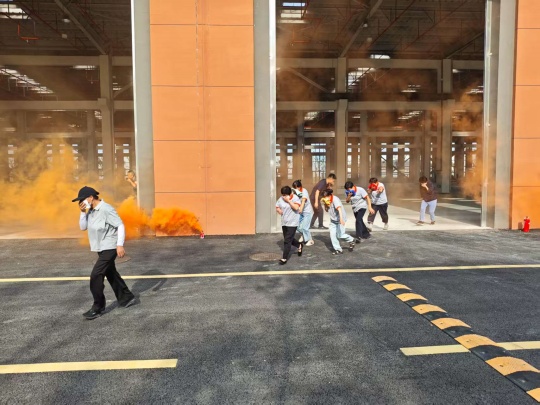 隨著警報響起,滅火組、疏散組、救護(hù)組、警戒組、通信組迅速響應(yīng),各司其職。在工作人員引導(dǎo)下,參與員工按照預(yù)定疏散路線快速有序撤離,僅用3分鐘便全部安全抵達(dá)安全疏散點(diǎn)。