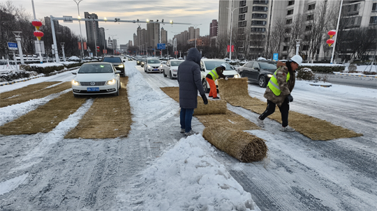 為確保城市主干道及橋梁暢通,建發(fā)公司緊抓夜間作業(yè)窗口,秉持“人歇車不歇”原則,調(diào)配精良設(shè)備與人員,對易結(jié)冰的橋面及主干道進(jìn)行高強(qiáng)度清除作業(yè)。作業(yè)人員利用后半夜車流較少的時(shí)機(jī),集中操作雪滾車、撒布機(jī)等設(shè)備,并同步在關(guān)鍵路口鋪設(shè)防滑墊。截至20日17時(shí),累計(jì)投入各類機(jī)械16臺、作業(yè)人員320名,撒布融雪劑60噸,有效保障了主要道路的安全通行。