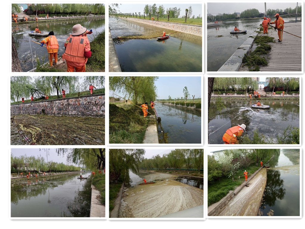 加強(qiáng)河道水草清理力度,提升河道水環(huán)境、保河道暢通。4月初,河道水草大量繁殖,園區(qū)利民河、蔡莊大溝等河道滋生了大量水草,給河道保潔帶來極大難度,為了盡快完成河道水草打撈工作,公司組建了河道清撈隊(duì),每天安排20名環(huán)衛(wèi)工人對(duì)河道進(jìn)行集中打撈,尤其是針對(duì)蔡莊大溝水淺、駁岸高、工作量大等情況,積極探索、創(chuàng)新工作方法,采用了“機(jī)械先行,人工輔助”的作業(yè)模式,作業(yè)效率大幅度提升,預(yù)計(jì)4月25日前全面完成河道水草打撈,重現(xiàn)園區(qū)“碧波潺潺、河暢水美”的河道景觀。