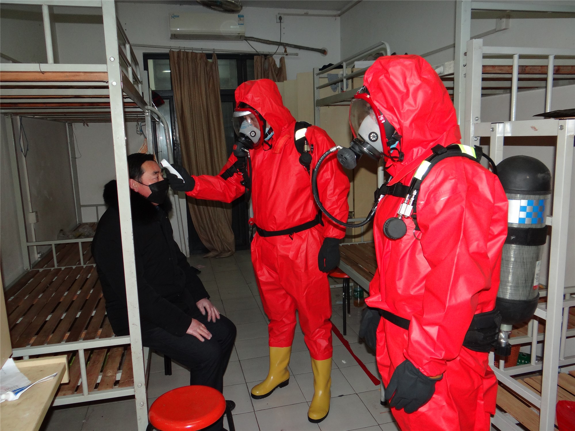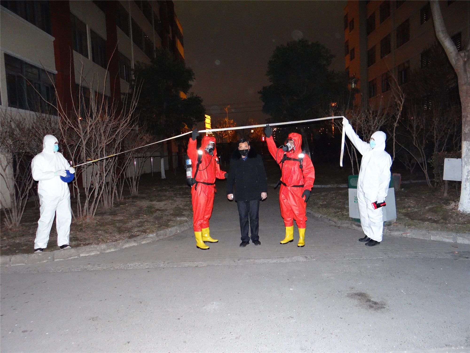 本次演練主要模擬一位5天前從徐州回到園區(qū)公舍的35歲男性患者,因發(fā)熱、咳嗽、咽痛、頭痛現(xiàn)象開始進(jìn)行演練,應(yīng)急小組迅速拉起警戒、轉(zhuǎn)移、指定區(qū)域隔離、消毒,并匯報(bào)相關(guān)部門,按照實(shí)戰(zhàn)應(yīng)急響應(yīng)標(biāo)準(zhǔn),統(tǒng)一領(lǐng)導(dǎo)指揮,工作人員加強(qiáng)個(gè)人防護(hù),演練過程緊張有序,細(xì)致謹(jǐn)慎,整場新型冠狀病毒肺炎應(yīng)急演練活動(dòng)取得圓滿成功。