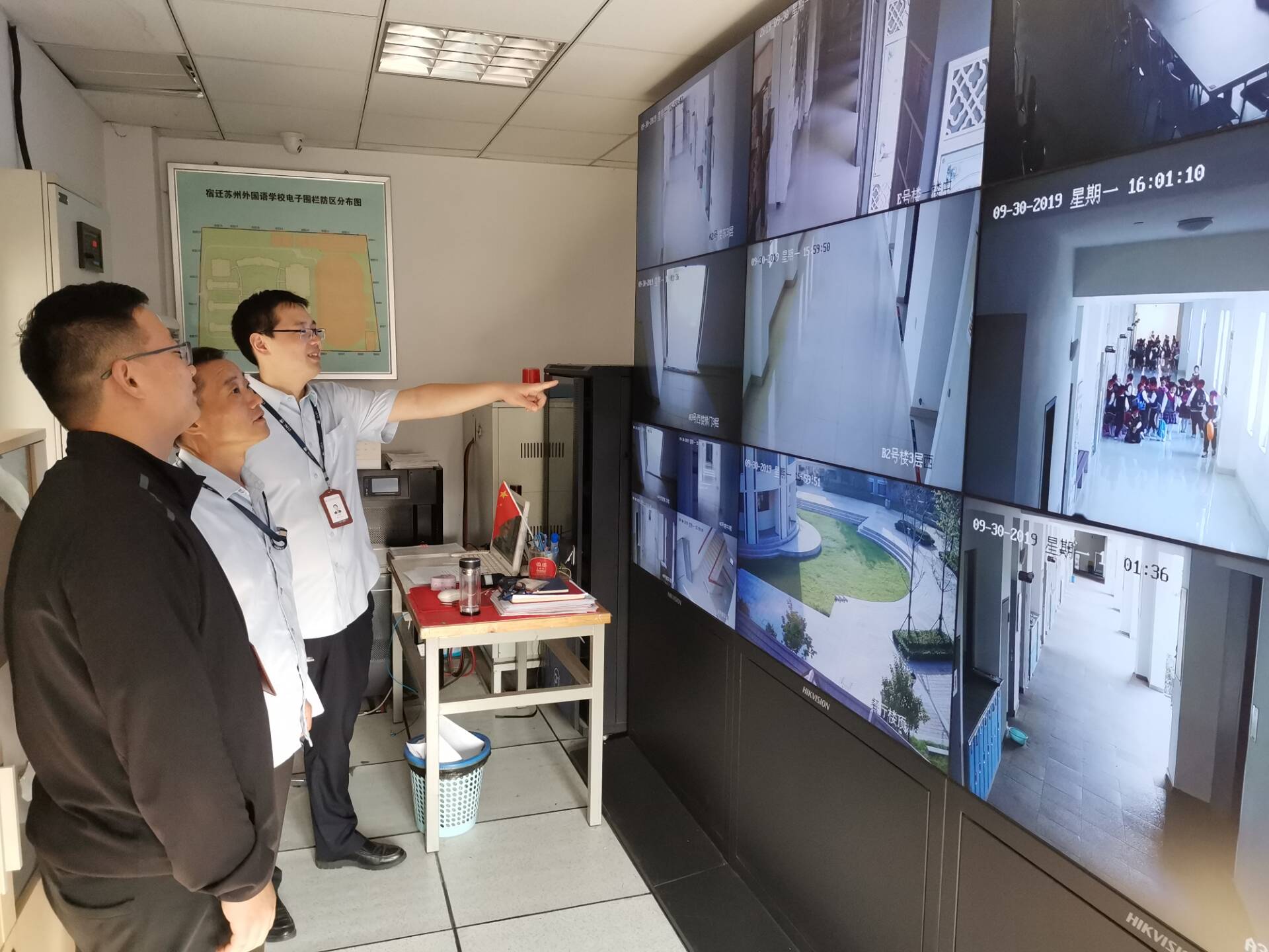 本次檢查對南校區(qū)實驗室、教學樓、圖書館、高低壓配電房、消防監(jiān)控室、水泵房、食堂等處進行檢查,詳細了解安全隱患整治、設備運行和維護情況,并隨機調(diào)取觀看監(jiān)控視頻,檢驗監(jiān)控視頻的覆蓋區(qū)域和監(jiān)控報警系統(tǒng)的使用情況,對人防、物防和技防“三防一體”提出人員專業(yè)培訓、視頻數(shù)據(jù)處理、運行環(huán)境優(yōu)化等方面的要求。