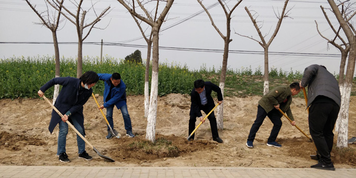 植樹現(xiàn)場,熱鬧非凡。公司員工分工協(xié)作,扛苗立苗,揮鍬鏟土,扶苗踏實(shí),挖坑、栽樹、蓋土、澆水等各環(huán)節(jié)都精心對(duì)待,栽得認(rèn)真,干得賣力,整個(gè)植樹活動(dòng)現(xiàn)場一片熱火朝天的勞動(dòng)景象。