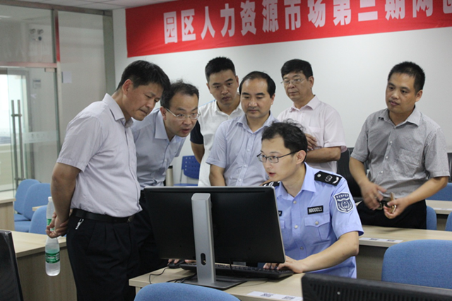 隨后,于堅強一行還參觀了位于園區(qū)人力資源市場的“蘇宿園區(qū)食品安全培訓考試中心”,并觀看了在線培訓系統(tǒng)的現(xiàn)場演示。