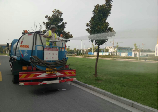 綠化養(yǎng)護單位派出灑水車和養(yǎng)護人員針對不同植物生長習性進行澆水養(yǎng)護,對需水量大的苗木進一步加大澆灌力度,對無遮擋物的草坪增加澆水頻次,對所移栽的樹木樹穴灌溉2-3次透水等多種舉措進行澆水降溫。
