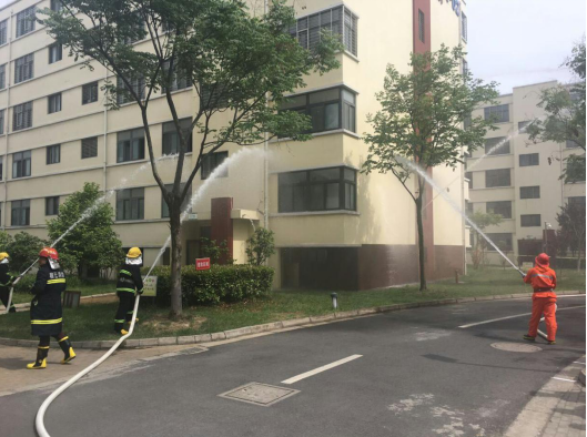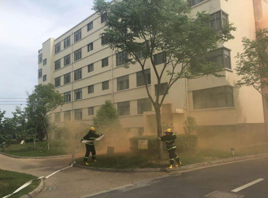 14:20分,園區(qū)公舍2號宿舍樓冒起滾滾濃煙,隨即刺耳的火災(zāi)警報聲響徹園區(qū),義務(wù)消防戰(zhàn)斗人員接到指示立即啟動消防三輪車奔赴火災(zāi)現(xiàn)場。不到一分鐘時間,一至六層的租戶在疏散人員的帶領(lǐng)下掩住口鼻,彎著腰,有序地從宿舍的消防安全通道逃生。隨即,消防戰(zhàn)斗人員按照指示迅速開啟消防水泵對“起火”后的宿舍樓進行快速滅火,救護人員隨即趕到現(xiàn)場參加救護,演練持續(xù)近五分鐘后圓滿完成。