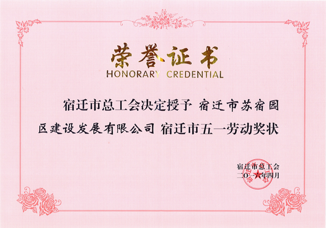 榮獲宿遷市“五一勞動獎狀”先進單位并受到表彰,是公司在園區(qū)工委、管委會的正確領(lǐng)導(dǎo)下,全體員工齊心協(xié)力、奮力拼搏下,共同努力的結(jié)果。近年來,公司緊緊圍繞園區(qū)經(jīng)濟發(fā)展戰(zhàn)略目標和中心工作,銳意進取,改革創(chuàng)新,扎實推進各項目標任務(wù),努力推動經(jīng)營理念大變革,服務(wù)方式大創(chuàng)新,管理水平大提升,取得了顯著成效。公司將以此為動力,繼續(xù)集中全部精力,一心一意抓發(fā)展,凝心聚力促跨越,突出重點,強化措施,全力抓好各項工作落實,為促進園區(qū)經(jīng)濟持續(xù)健康發(fā)展和社會和諧穩(wěn)定作出更多更大的貢獻。