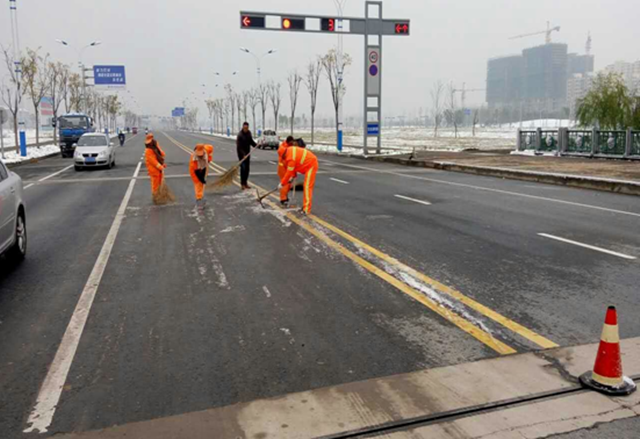 11月24日,小雪節(jié)氣剛過(guò),宿遷便迎來(lái)了一場(chǎng)突如其來(lái)的小雪,雖然路面積雪不多,但伴隨著凜冽的寒風(fēng),氣溫驟降,次日早晨部分路面仍存在結(jié)冰現(xiàn)象,加上路面落葉較多,環(huán)衛(wèi)工人天未亮就走上街頭開(kāi)始除雪化冰,對(duì)于他們來(lái)講,這注定又是忙碌的一天,經(jīng)過(guò)3個(gè)小時(shí)緊張而有序的忙碌,基本完成了園區(qū)主次干道的清掃工作。