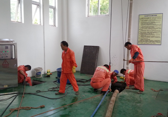 本次維護(hù)重點(diǎn)工作是泵站清淤及潛水泵檢查維護(hù)。經(jīng)過(guò)長(zhǎng)期運(yùn)行,污水泵室及管道內(nèi)積聚了大量污泥、雜物,造成淤積,影響污水泵的正常運(yùn)行。為了確保污水正常流入泵室,每半年將組織清淤一次。同時(shí),對(duì)3臺(tái)潛水泵進(jìn)行檢查,補(bǔ)充黃油,確保3臺(tái)泵都能正常運(yùn)行。
