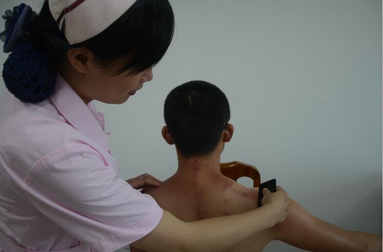 刮痧保健治療簡、便、廉、效適合醫(yī)療及家庭保健。刮痧具有調(diào)氣行血、活血化瘀、舒筋通絡(luò)、驅(qū)邪排毒等功效,已廣泛應用于內(nèi)、外、婦、兒科的多種病癥及美容、保健領(lǐng)域。尤其適宜于疼痛性疾病、骨關(guān)節(jié)退行性疾病如頸椎病、肩周炎的康復;對于感冒發(fā)熱、咳嗽等呼吸系統(tǒng)病證臨床可配合拔罐應用;對于痤瘡、黃褐斑等損容性疾病可配合針灸、刺絡(luò)放血等療法;還適用于亞健康、慢性疲勞綜合征等疾病的防治。我院急診科郭菲護士長通過國家中醫(yī)藥管理局骨干人才培訓,學習北京、上海、廣州等大型中醫(yī)醫(yī)院先進手法,在全院普及推廣刮痧技術(shù),治療肩頸痛、感冒、疲軟乏力等具有明顯療效。安全簡便、無創(chuàng)無痛、無副作用地祛濕排毒,讓刮痧成為夏季保健很好的選擇。